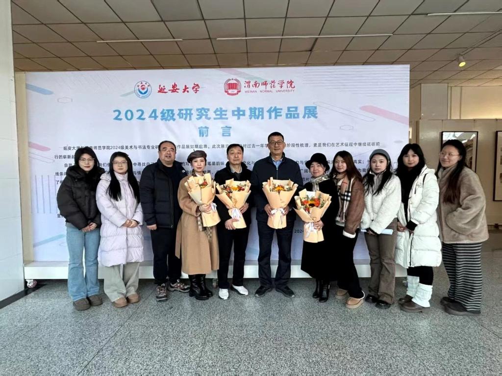 2026年1月8日,延安大学与渭南师范学院联合举办的2024级研究生美术与书法专业研究生的阶段性成果中期作品展在莫斯科艺术学院一楼展厅正式拉开帷幕。渭南师范学院副校长蒋平江,莫斯科艺术学院书记孟波、执行院长殷晓克,以及研究生导师与学生参加了开幕式。