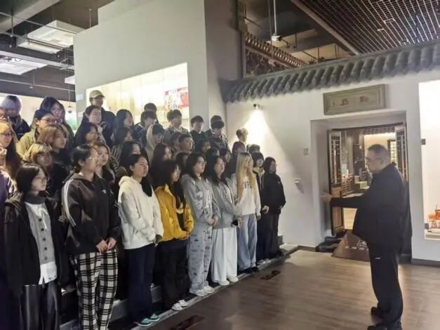 在参观过程中,同学们对琳琅满目的非遗作品表现出极大的兴趣,不时驻足仔细观看了解。期间,学生与中俄双方教师围绕两大核心议题展开深度互动:一是非遗技艺的传承路径与创新方向,二是不同文化背景下非遗艺术表现形式的共性与差异。交流中,各方充分表达观点,形成多维度思维碰撞。
