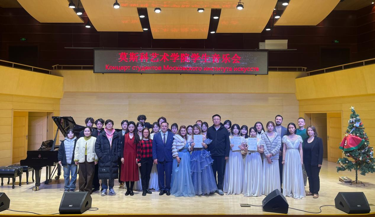 12月18日晚,莫斯科艺术学院俄罗斯籍教师奥列格、娜塔莉亚和玛丽亚指导,在逸夫楼音乐厅举办师生音乐会,表演形式包括独唱、合唱、钢琴独奏、四手联弹等,节目内容涵盖华语流行歌曲、俄语经典歌曲、钢琴作品与爵士乐等多种风格类型作品。现场氛围热烈温馨,赢得了师生观众的阵阵掌声。
