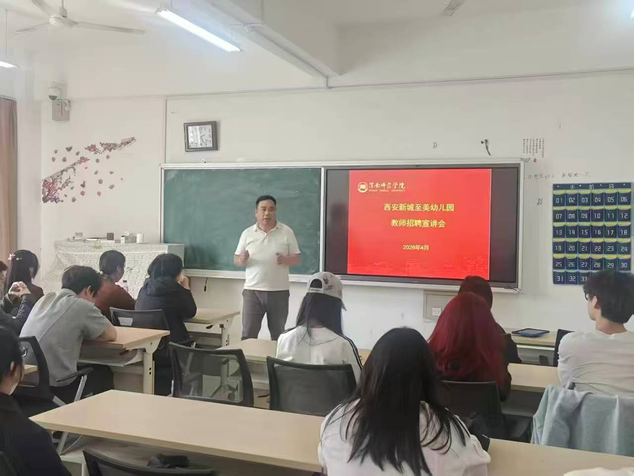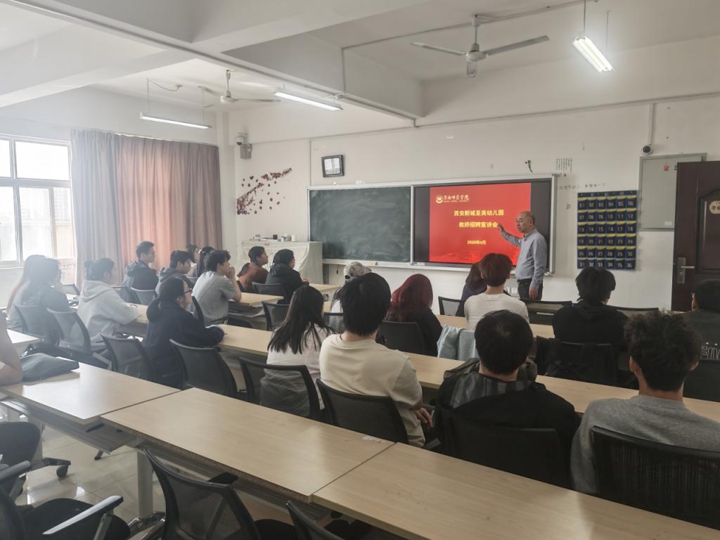 4月3日,莫斯科艺术学院在逸夫楼S601举办西安新城至美幼儿园教师招聘宣讲会,2026届未就业毕业生参与此次活动。