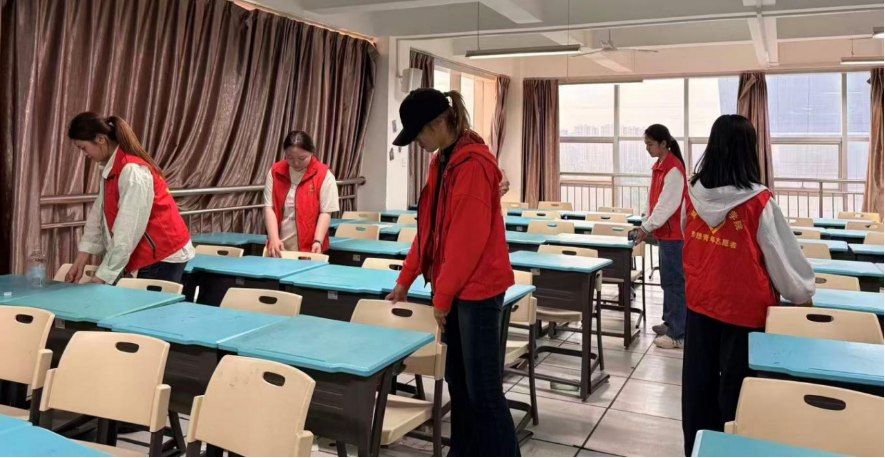深入教学楼教室,志愿者们开展全方位清洁工作:大家分工协作,擦拭黑板、清理讲台杂物,细致擦拭课桌椅、整理摆放,对教室角落、门窗等卫生死角进行彻底清扫,用汗水让教室焕然一新,为师生打造了整洁舒适的学习空间。