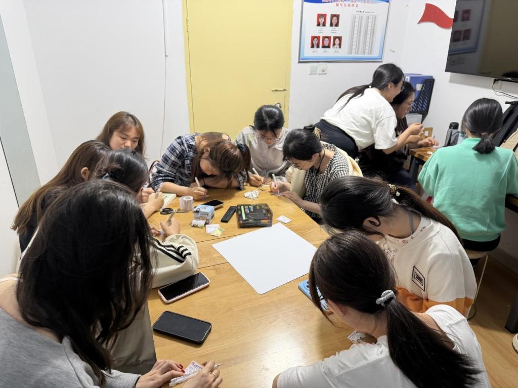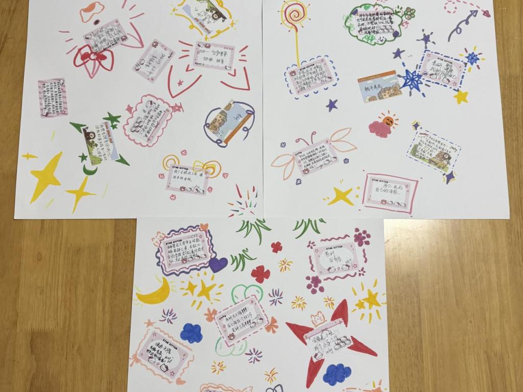 随后同学们拿起画笔、彩纸、贴纸等材料,将自己的未来愿景精心书写、装饰:用卡通元素绘制就业目标,标注“考研上岸”等关键词呈现升学规划。一张张色彩鲜明、充满诚意的愿景卡片,不仅是个人目标的清晰呈现,更展现了学前教育专业学子对未来的憧憬与担当。