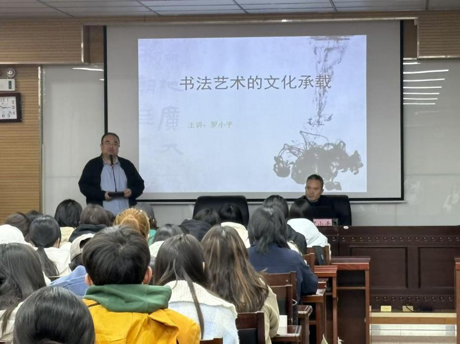 为多元协同赋能人才培养,助力文化强省建设。2025年10月23日上午,我院特邀渭南职业技术学院美育中心副主任罗小平为师生作《书法艺术的文化承载》学术讲座。学院美术学、学前教育专业师生200余人参加,讲座由执行院长殷晓克主持。