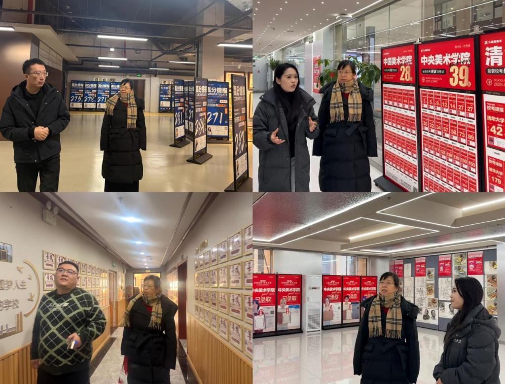 工作小组先后深入走访石家庄风云美术学院、久陆堂艺术培训学校、河北艺术路名师教育三家艺术教育机构,开展实地调研。参观各机构教学场地、专业画室、功能教室及联考作品展示区,了解教学环境、设施配备、课程设置与学生日常习作成果,重点了解艺术培训办学规范、师资力量、教学管理及艺考备考等相关情况。