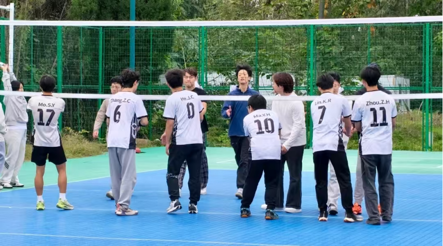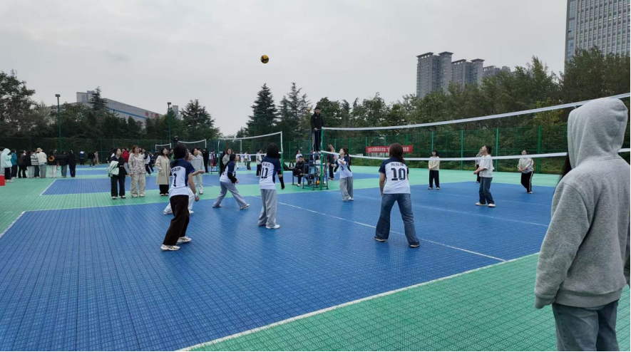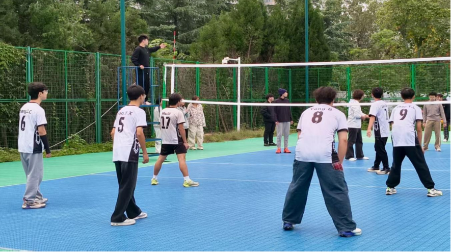 莫艺学子在赛场上奋力拼搏,团结协作,队员默契传接,随赛况调整节奏,腾空跃起、有力扣杀的热血表现,展现了莫艺学子积极向上的青春风采。