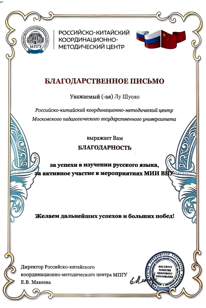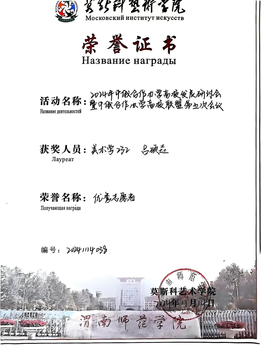 2024年11月中俄合作办学高校发展研讨会暨中俄合作办学高校联盟第五次会议“优秀志愿者”