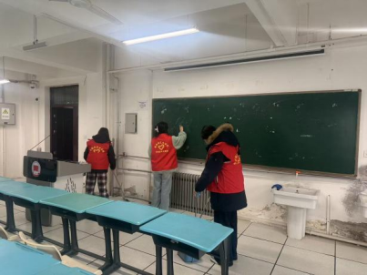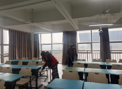 学院志愿者服务队走进教学楼各教室开展清洁行动,清扫教室环境。志愿者们手持扫帚、拖把、抹布等工具分工协作,擦拭黑板、讲台、门窗及窗台,清扫地面污渍、整理课桌缝隙杂物、规范摆放课桌椅,清理卫生死角。他们的行动让教室窗明几净、井然有序,为师生打造了整洁舒适的学习环境。