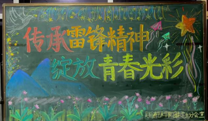 绘制主题板报,传递雷锋精神。莫艺志愿者结合专业优势,发挥绘画、设计专长,在校园公共区域绘制学雷锋主题黑板报,将雷锋精神与艺术创作相融合,打造出主题鲜明、富有艺术感的板报,让其成为传递雷锋精神的阵地,使雷锋精神深入人心,也展现了莫艺学子的专业素养与家国情怀。