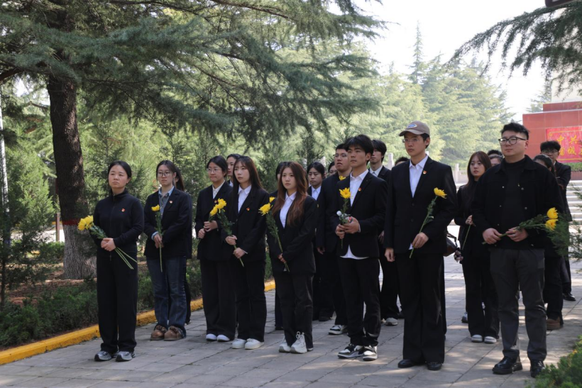 抵达陵园后,全体师生党员在永丰战役革命烈士纪念碑前整齐列队,共同追忆1948年那场被誉为“平原歼灭战范例”的壮烈征程。大家面向党旗重温入党誓词,铿锵誓言回荡陵园,既是对革命先烈的深切缅怀,也是坚守初心使命的郑重承诺。随后,全体人员向烈士敬献鲜花,肃立默哀、鞠躬致敬,以庄重朴素的仪式寄托哀思、告慰英魂。