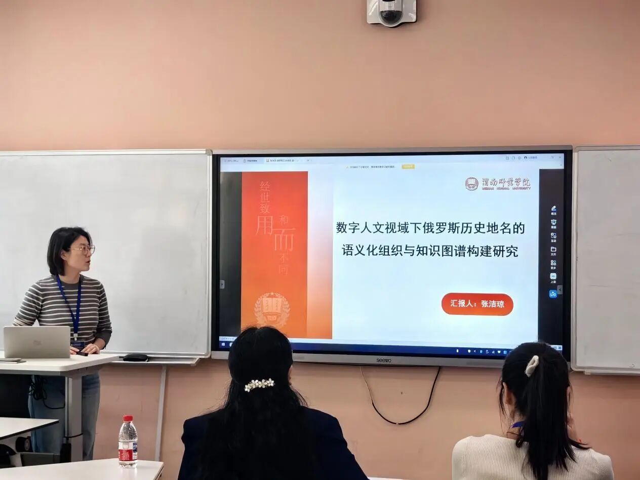 论坛期间,张洁琼以《数字人文视域下俄罗斯历史地名的语义化组织与知识图谱构建研究》为题作学术报告。报告立足数字人文研究方法,将俄罗斯历史地名作为核心研究对象,系统阐述如何运用语义化组织技术解析地名中蕴含的历史文化信息,探索构建俄罗斯历史地名知识图谱的技术路径与学术价值,为传统地名研究注入数字技术活力,实现历史文化研究与现代信息技术的创新融合。